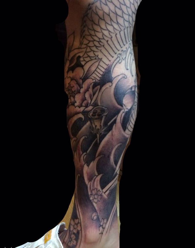 • T网红王老大花腿龙纹身图片_腿部新传统纹身图案