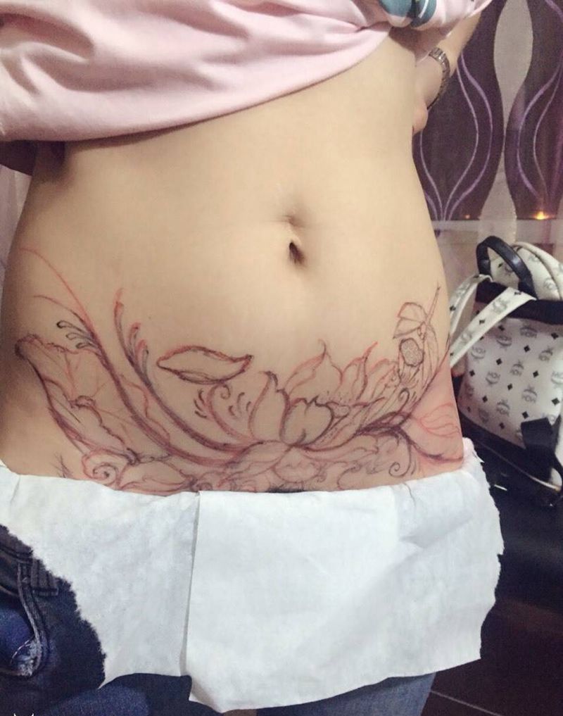 • T关于私处得爱!纹身图片_成品腹部清新字符图腾纹身图案