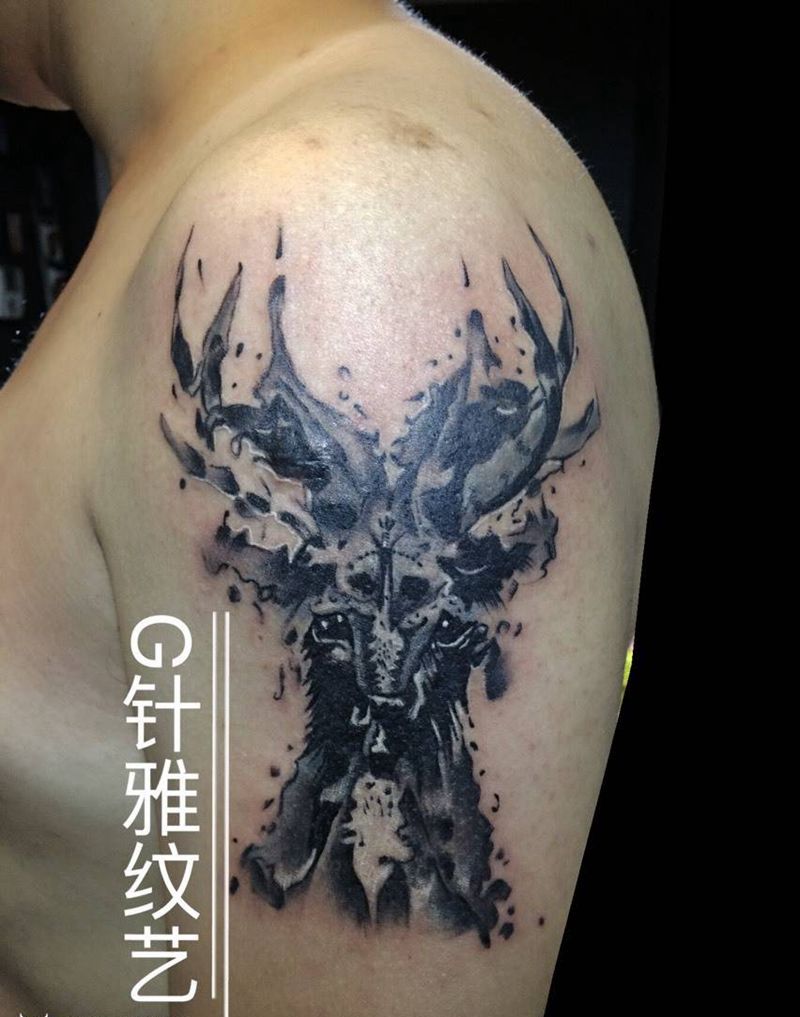 当前位置: 首页 >天津市纹身店-针雅TATTOO纹身图案>水墨鹿头纹身图片_