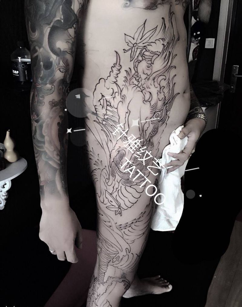 包腿连肚子大龙纹身图片_未完成纹身图案