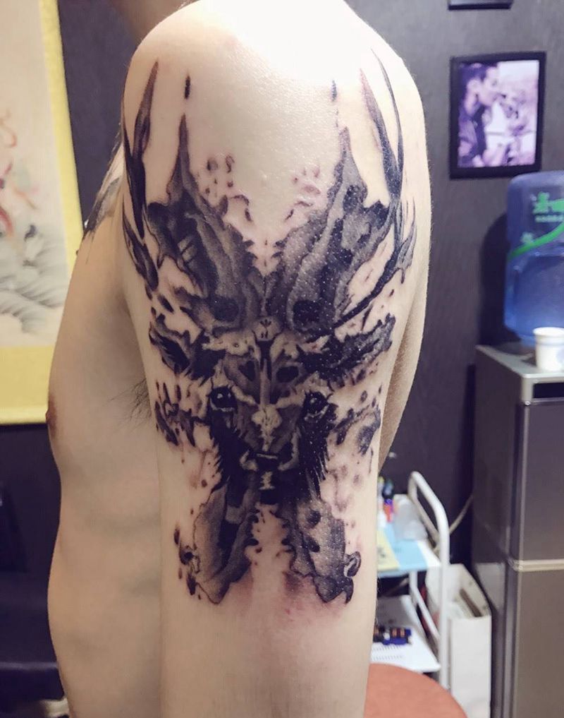 当前位置: 首页 >天津市纹身店-针雅TATTOO纹身图案>水墨鹿头纹身图片_