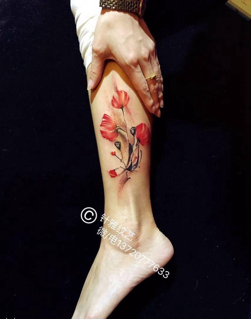 • T网红王老大花腿龙纹身图片_腿部新传统纹身图案