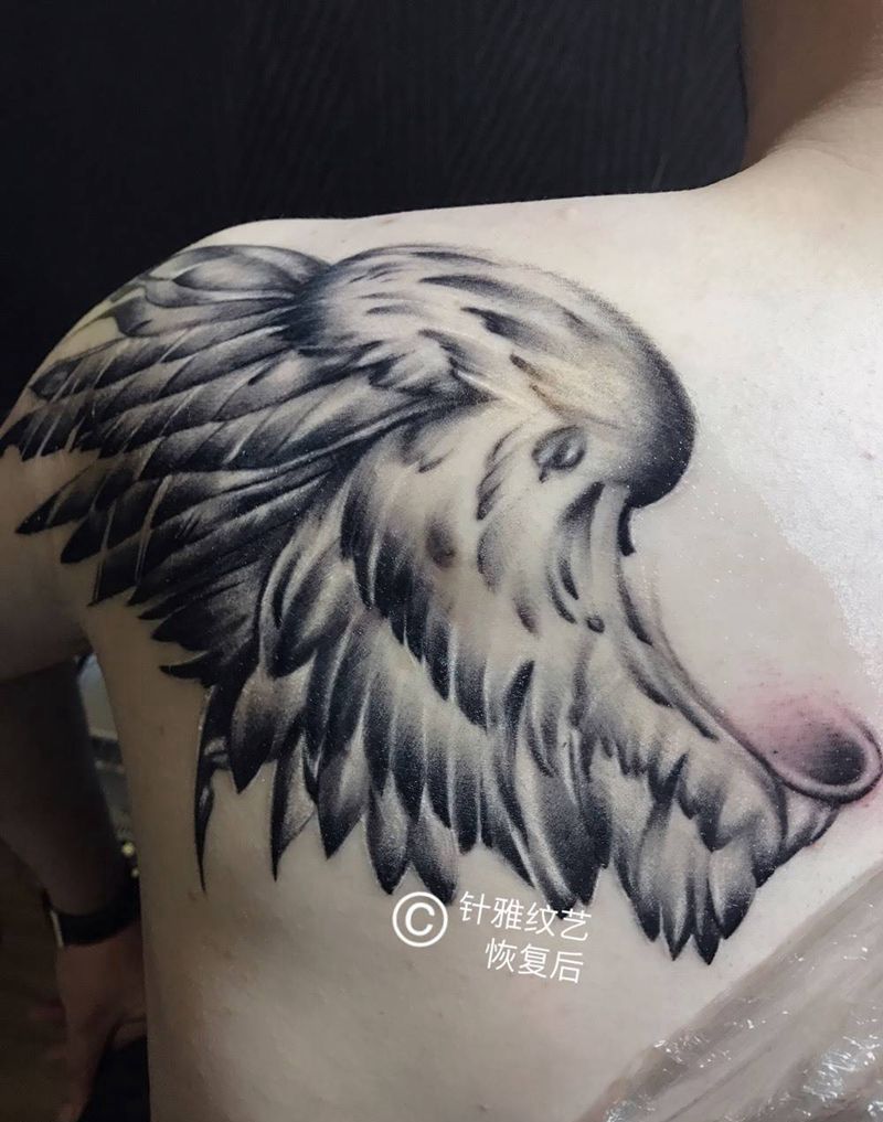 翅膀天使与魔鬼纹身图片_遮盖疤痕纹身图案