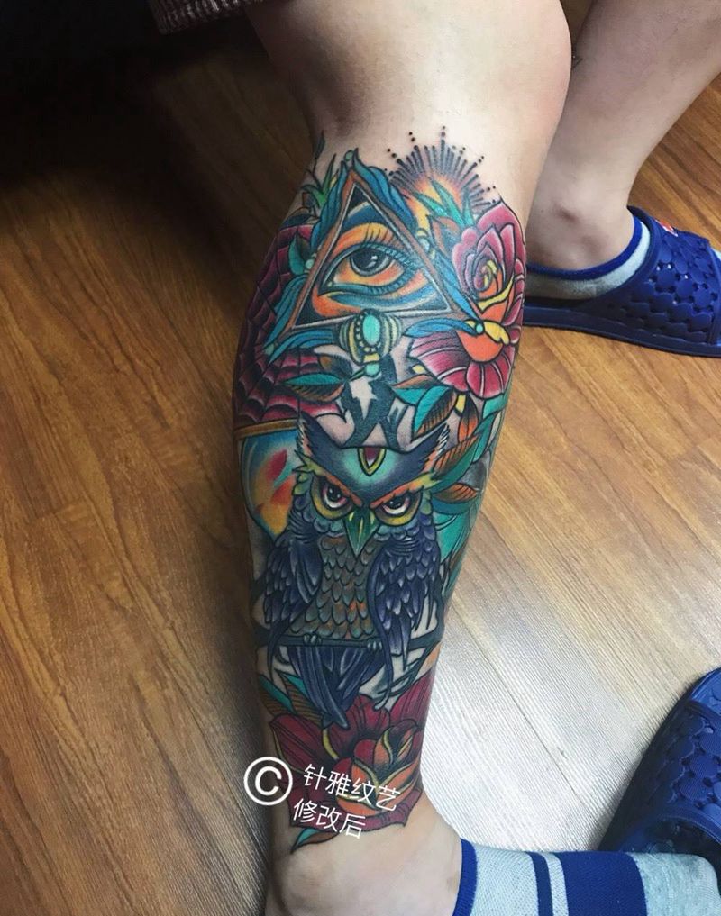 • T网红王老大花腿龙纹身图片_腿部新传统纹身图案