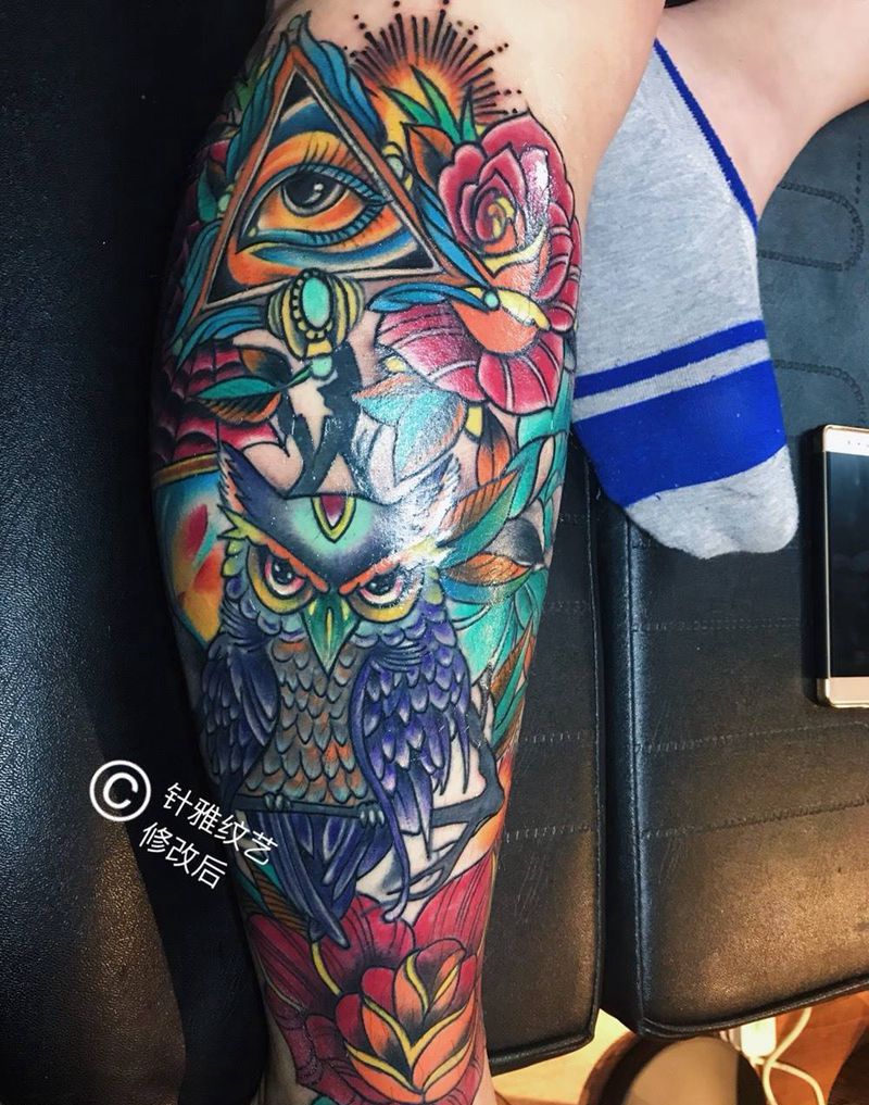 • T网红王老大花腿龙纹身图片_腿部新传统纹身图案