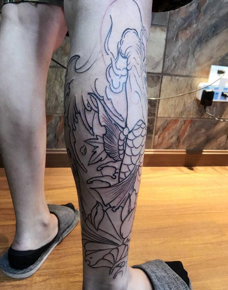 当前位置: 首页 >天津市纹身店-针雅TATTOO纹身图案>包小腿鱼!线条!下回继续纹身图片_