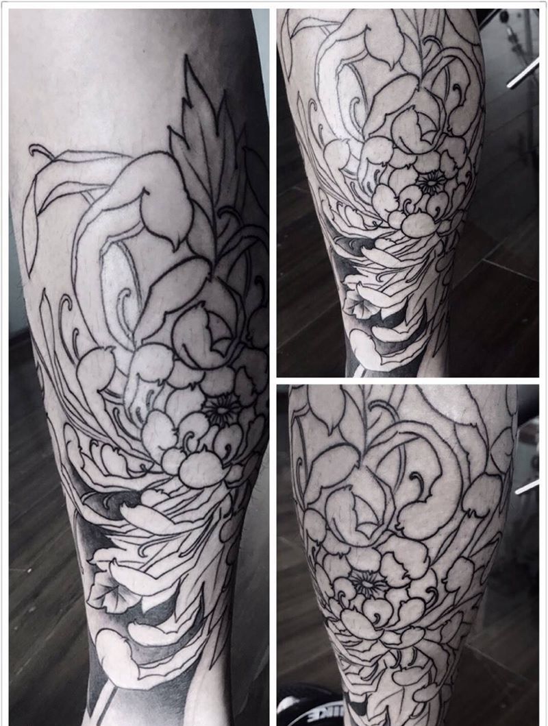 当前位置: 首页 >天津市纹身店-针雅TATTOO纹身图案>包小腿菊花纹身图片_