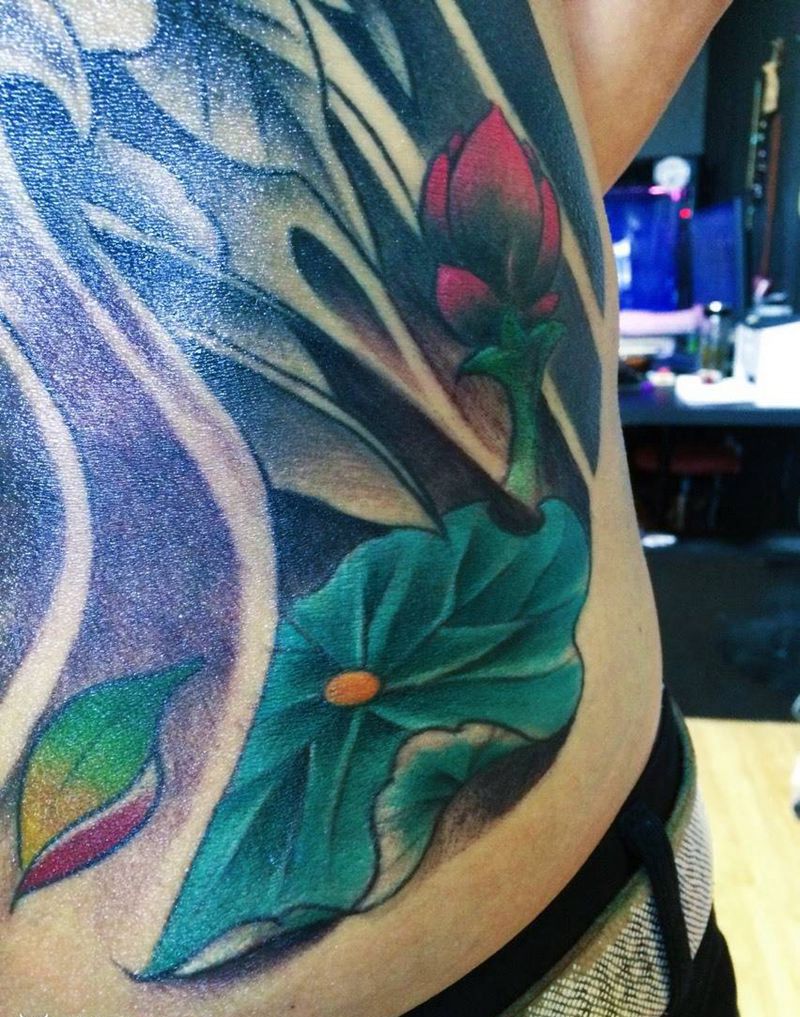 • 时尚性感的腹部莲花纹身图案