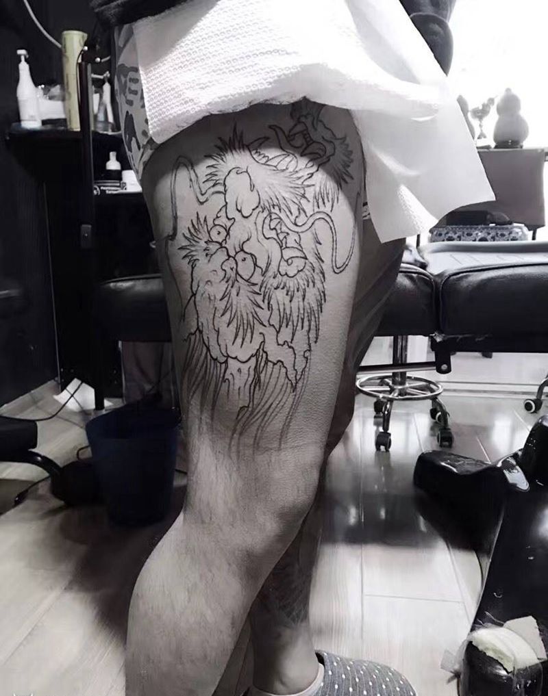 • T网红王老大花腿龙纹身图片_腿部新传统纹身图案