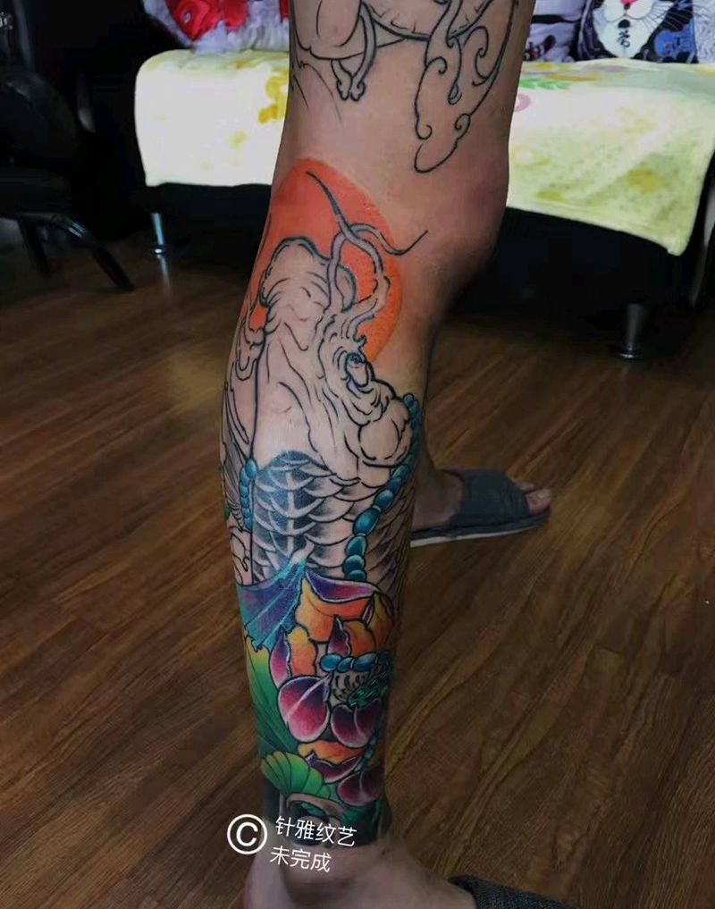 • T网红王老大花腿龙纹身图片_腿部新传统纹身图案