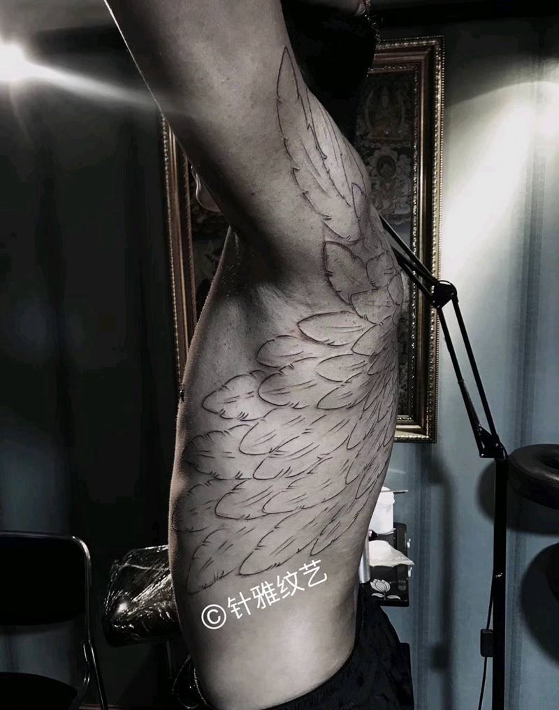 手绘上身翅膀水线完成纹身图片_