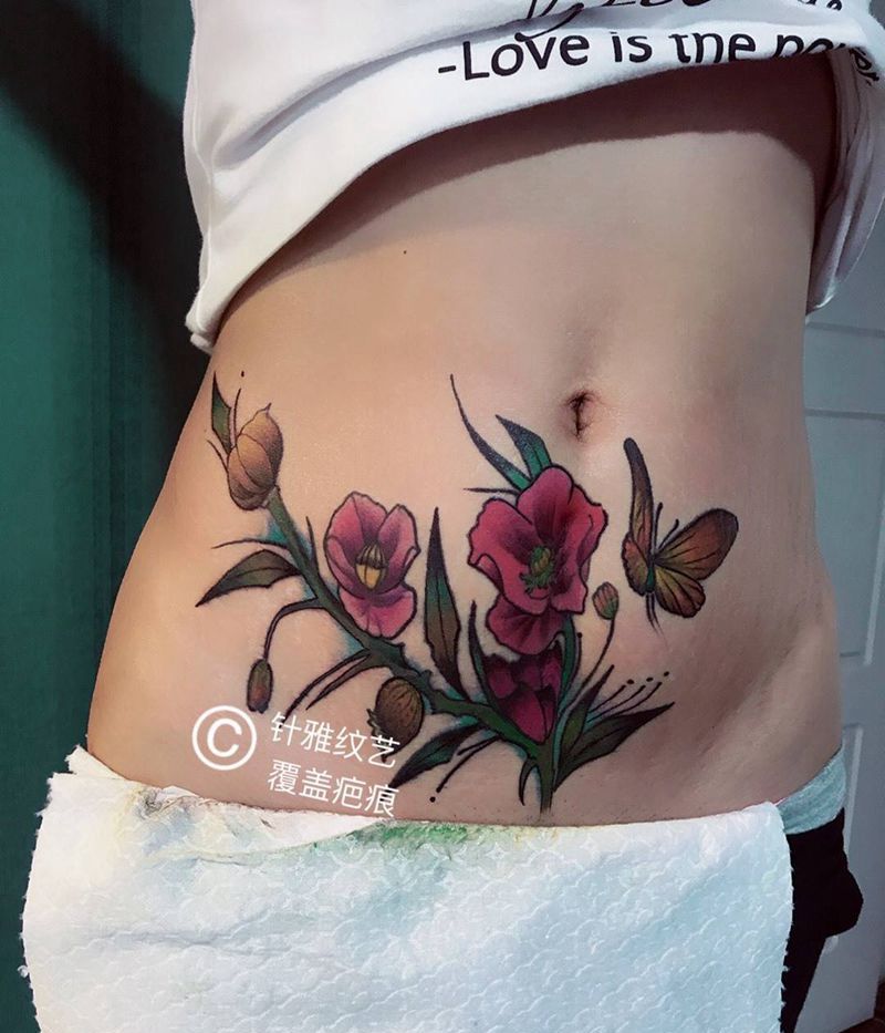 • 时尚性感的腹部莲花纹身图案