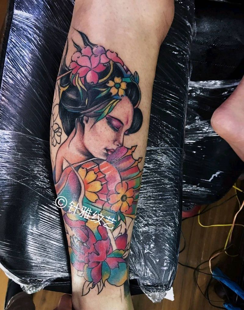 当前位置: 首页 >天津市纹身店-针雅TATTOO纹身图案>小腿艺妓纹身图片_