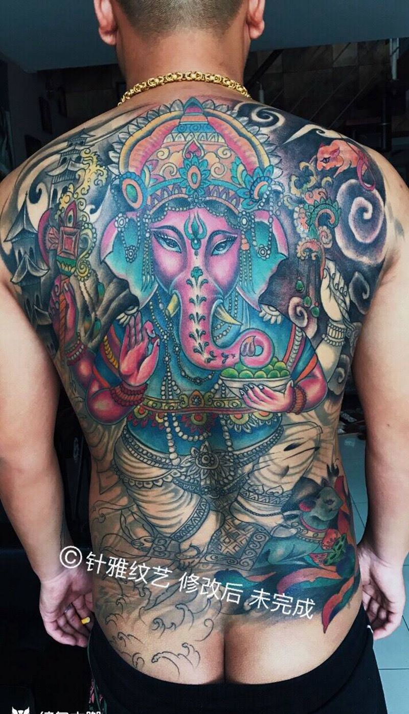 黑灰满背纹身图案