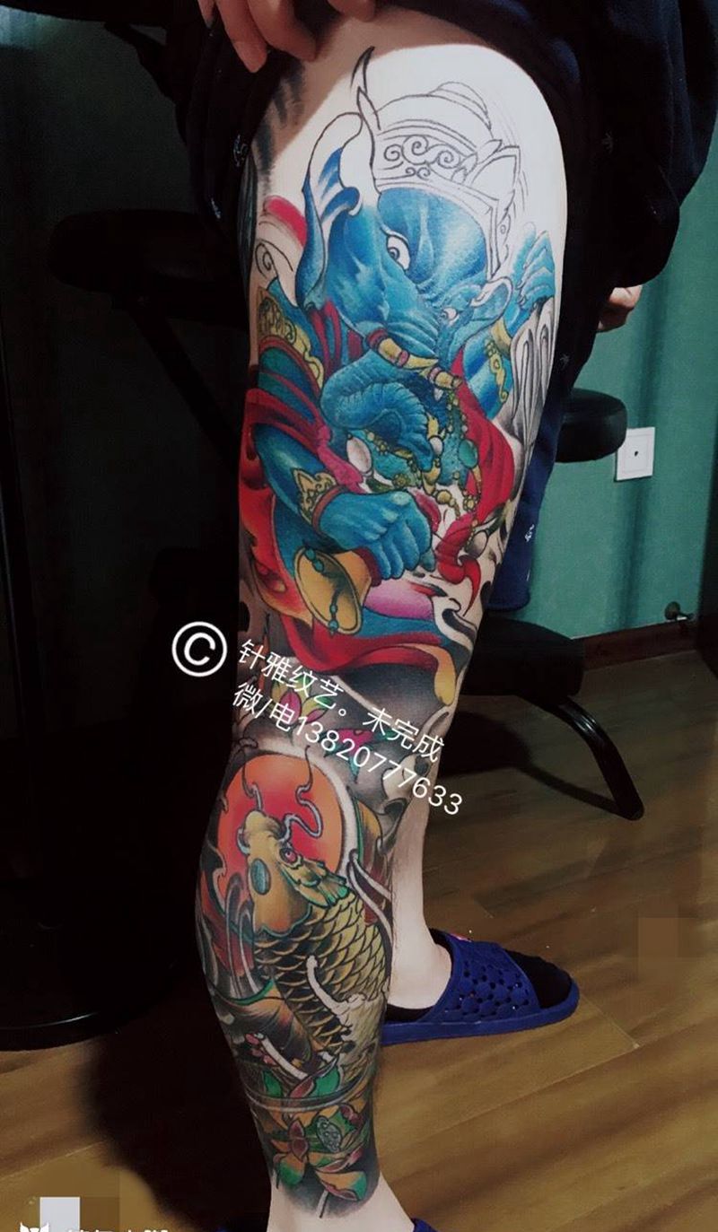 当前位置: 首页 >天津市纹身店-针雅TATTOO纹身图案>彩色包腿纹身图片_
