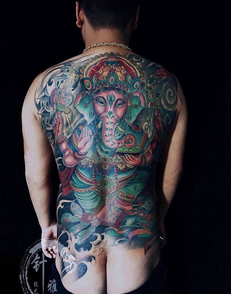 黑灰满背纹身图案