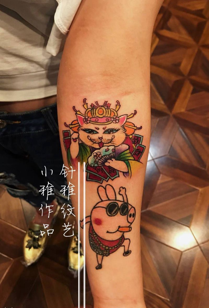• T招财猫纹身图片