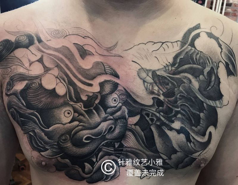 唐狮覆盖纹身图片_