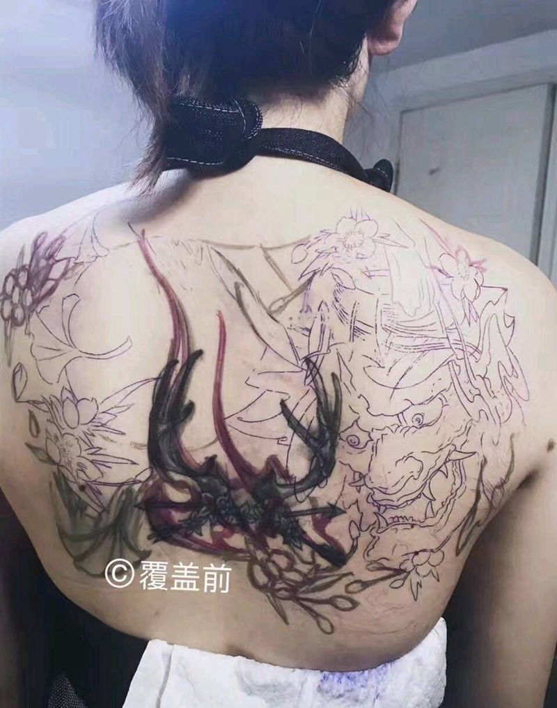 半背覆盖未完成纹身图片_