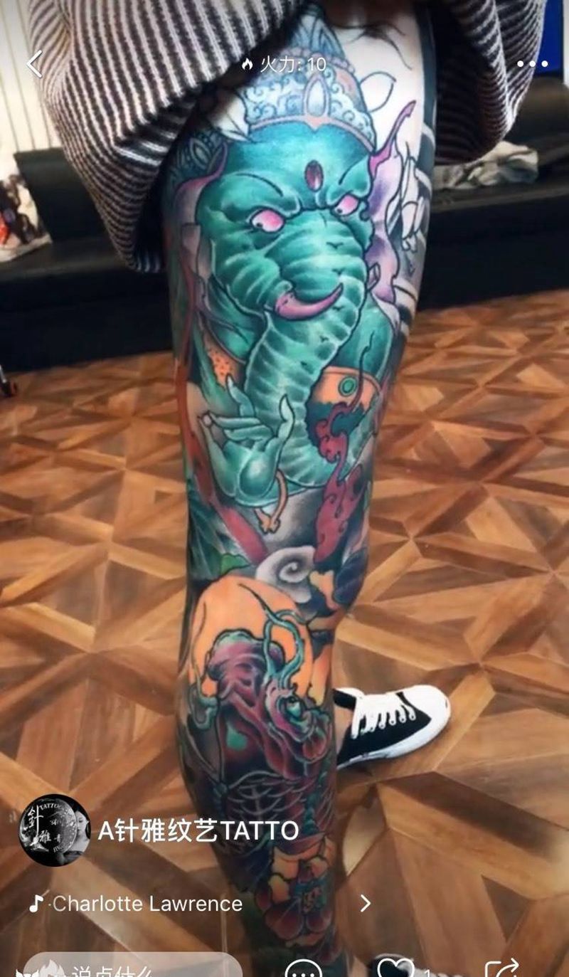 当前位置: 首页 >天津市纹身店-针雅TATTOO纹身图案>彩色包腿纹身图片_