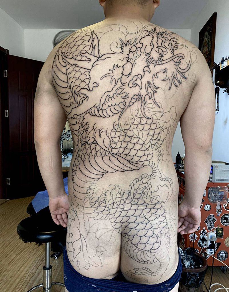 • T云龙九郎纹身图片_背部老传统云龙九郎纹身图案