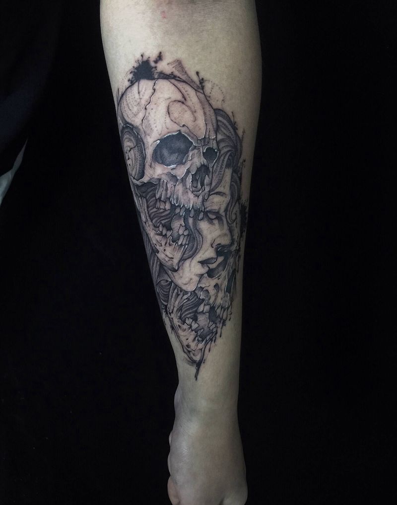 当前位置: 首页 >天津市纹身店-天津山谷刺青纹身图案>点线骷髅纹身图片_手臂纹身图案