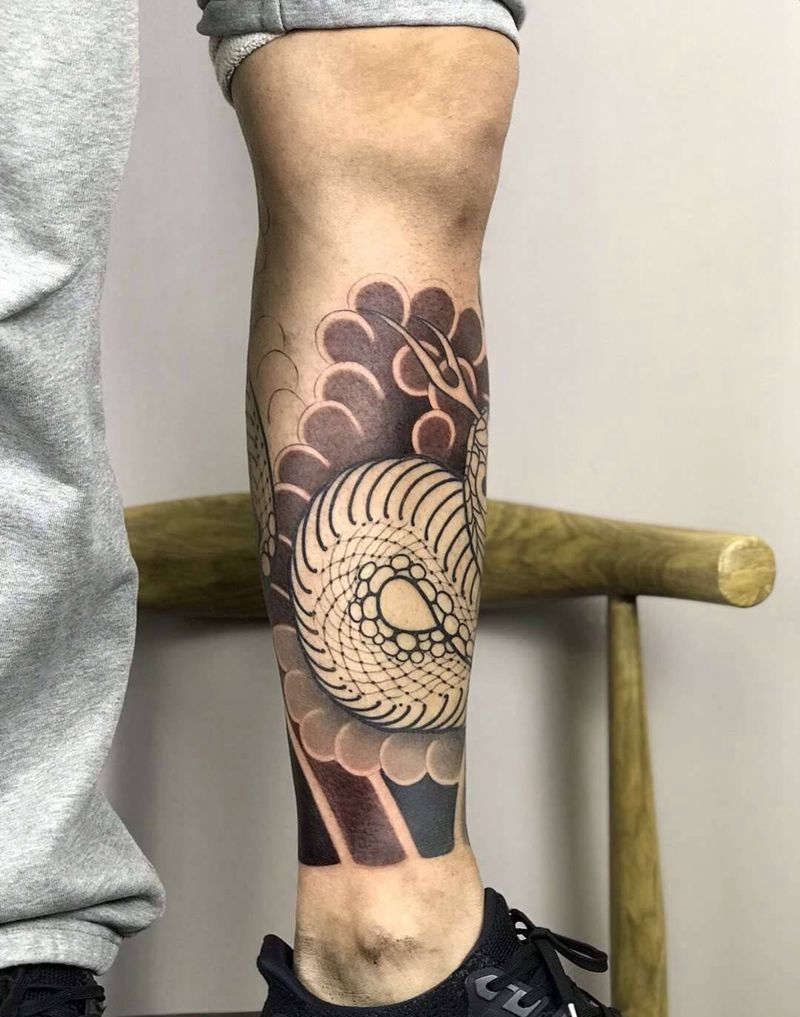 • T网红王老大花腿龙纹身图片_腿部新传统纹身图案
