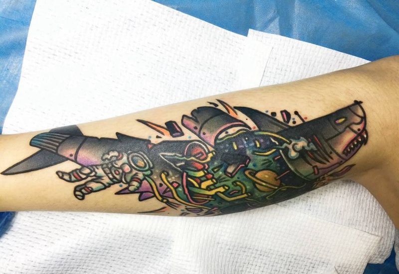 当前位置: 首页 >天津市纹身店-天津山谷刺青纹身图案>老学校鲨鱼纹身图片_手臂Old School老传统纹身图案