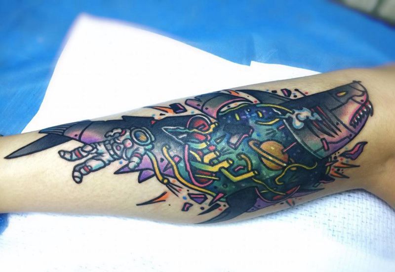 当前位置: 首页 >天津市纹身店-天津山谷刺青纹身图案>老学校鲨鱼纹身图片_手臂Old School老传统纹身图案