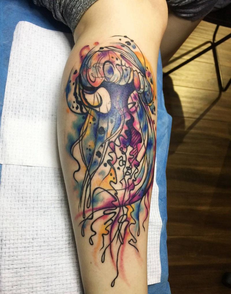 当前位置: 首页 >天津市纹身店-天津山谷刺青纹身图案>水彩水母纹身图片_腿部水彩纹身图案