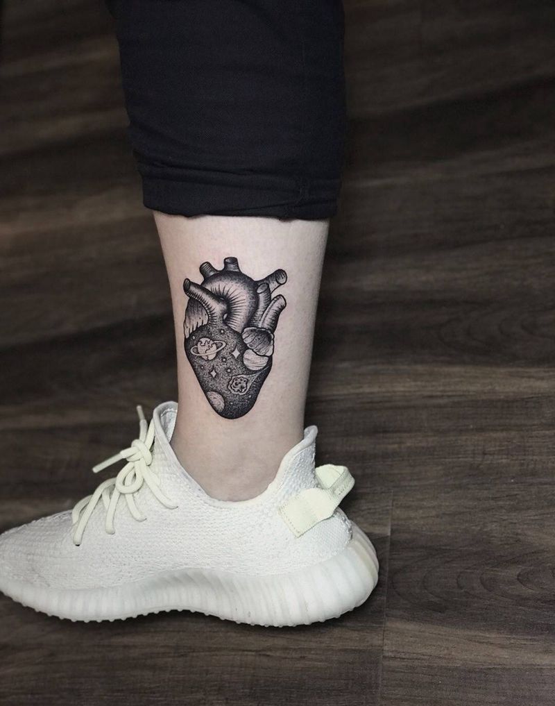 点刺心脏纹身图片_腿部点刺心脏纹身图案