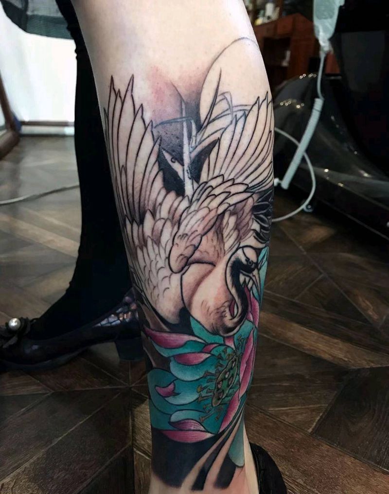 仙鹤。未完成。纹身图片_腿部新传统纹身图案
