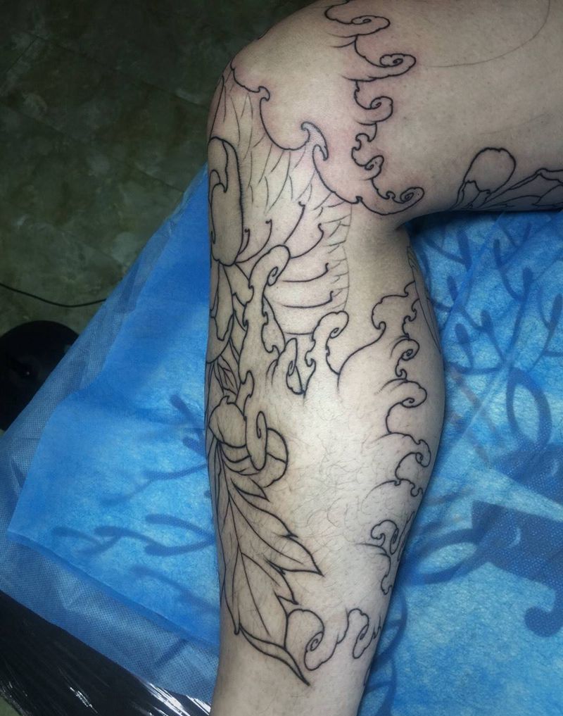• T网红王老大花腿龙纹身图片_腿部新传统纹身图案
