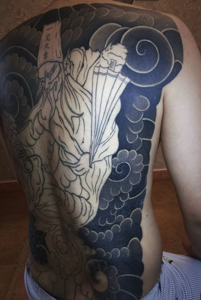 黑灰满背纹身图案
