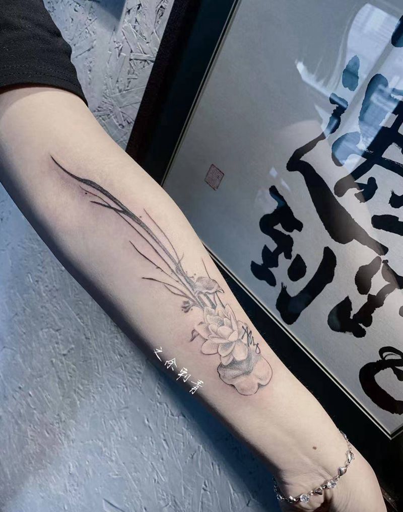 当前位置: 首页 >天津市纹身店-之余刺青纹身图案>国风小荷花纹身图片_手臂水墨荷花国风纹身图案