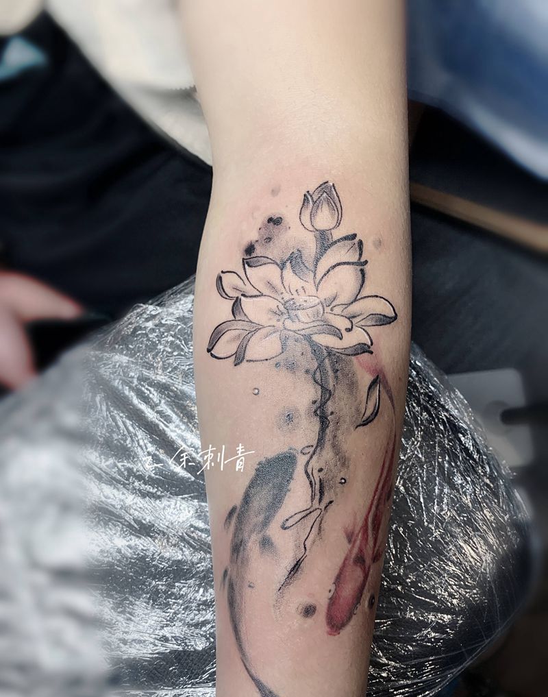 添加一支荷花纹身图片_手臂水墨荷花纹身图案