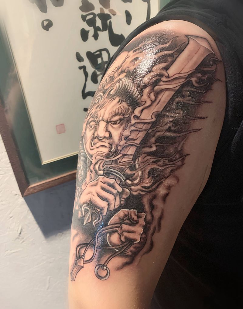 当前位置: 首页 >天津市纹身店-之余刺青纹身图案>不动明王纹身图片_手臂纹身图案