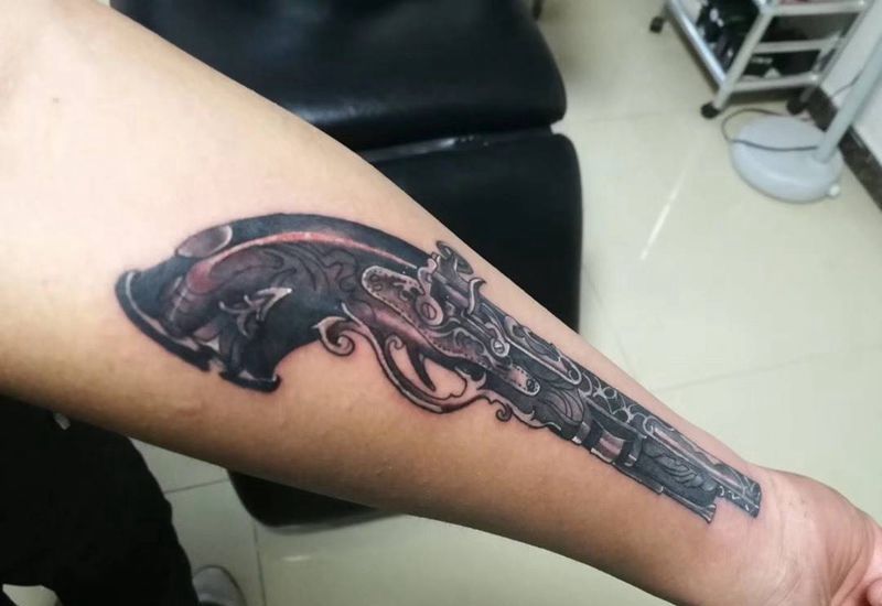 当前位置: 首页 >天津市纹身店-兿匠阁刺青纹身图案>枪纹身图片_手臂纹身图案