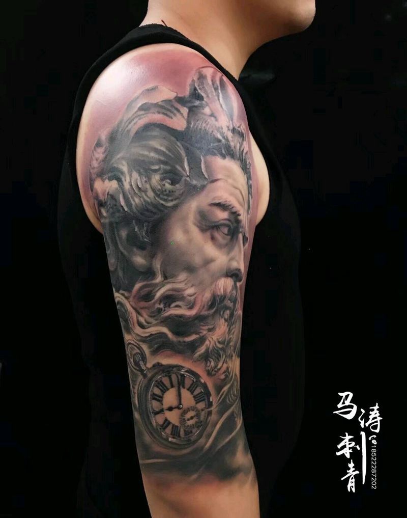当前位置: 首页 >天津市纹身店-马涛刺青纹身图案>波塞冬纹身图片_手臂手部欧美肖像写实人物鬼神成品纹身图案