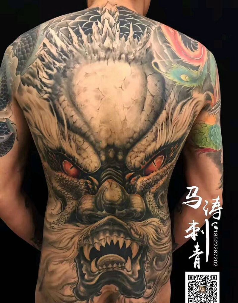黑灰满背纹身图案