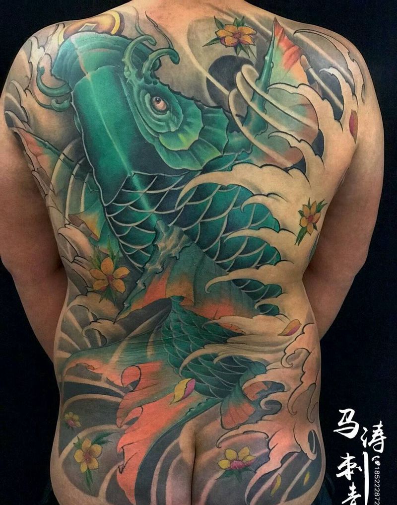 马涛刺青 鱼 龙 般若纹身图片_腰部背部臀部手臂腿部欧美传统静物鬼神成品纹身图案