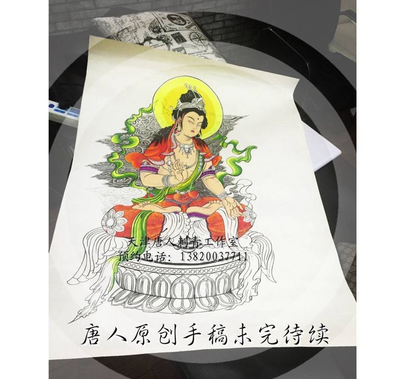 当前位置: 首页 >天津市纹身店-唐人刺青纹身图案>文殊菩萨 唐人写纹身图片_