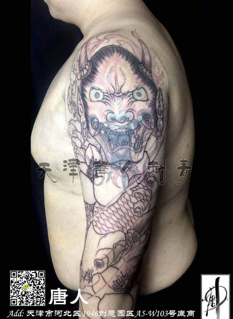 当前位置: 首页 >天津市纹身店-唐人刺青纹身图案>重彩遮盖 七分袖花臂完工纹身图片_