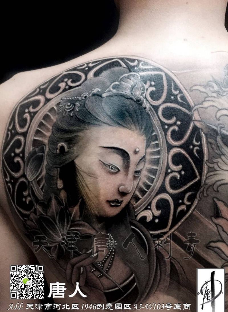 黑灰满背纹身图案