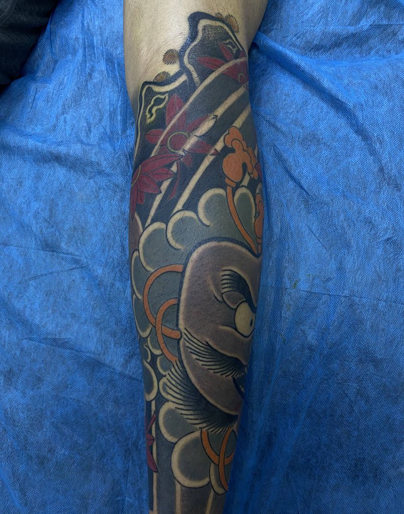 • T网红王老大花腿龙纹身图片_腿部新传统纹身图案