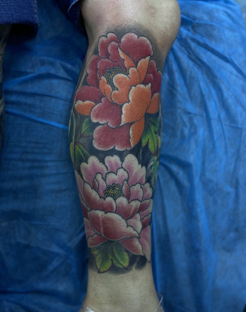 当前位置: 首页 >天津市纹身店-马涛刺青纹身图案>牡丹花纹身图片_腿部脚部新传统水彩纹身图案