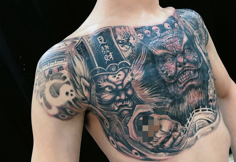 黑灰满背纹身图案