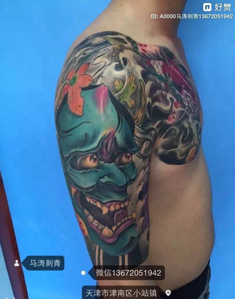 当前位置: 首页 >天津市纹身店-马涛刺青纹身图案>半甲鱼与般若纹身图片_