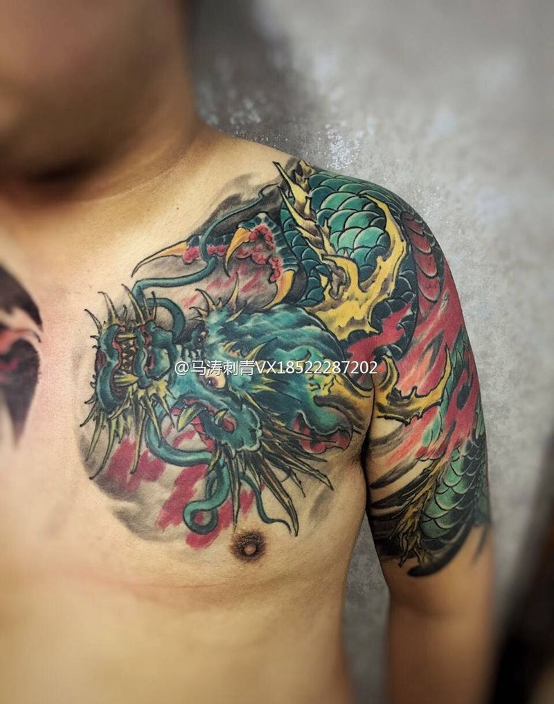 当前位置: 首页 >天津市纹身店-马涛刺青纹身图案>披肩龙作品纹身图片_胸部纹身图案