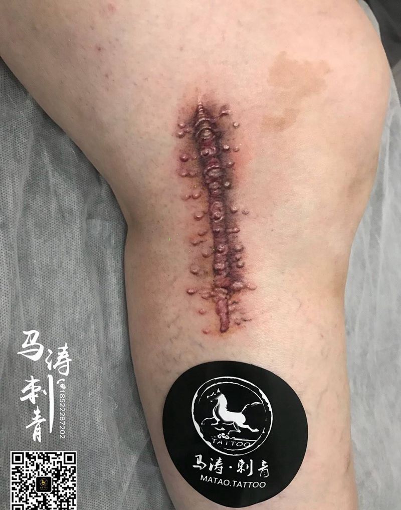 欧美疤痕纹身图片_成品腿部欧美写实几何原创脚部纹身图案